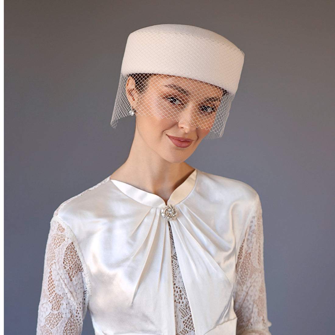 Divine Excellence Pillbox — a hat perfect for bridal occasions.This classic and elegant pillbox has...