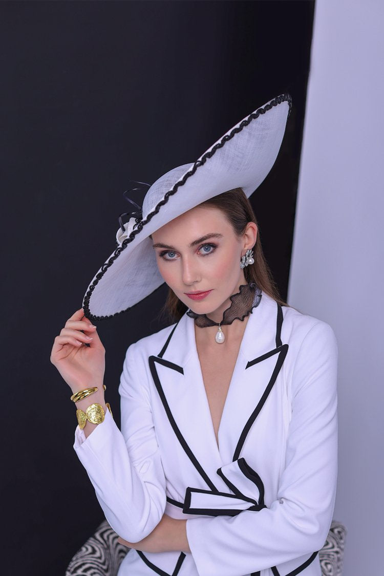 Helix — a hat perfect for special occasions.A stunning oversized white side-sweep hat, featuring a...