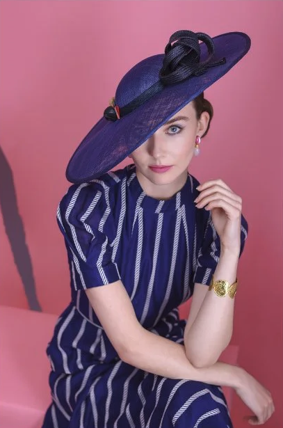 Curvae — a hat perfect for special occasions.An oversized dark navy saucer hat that artfully...