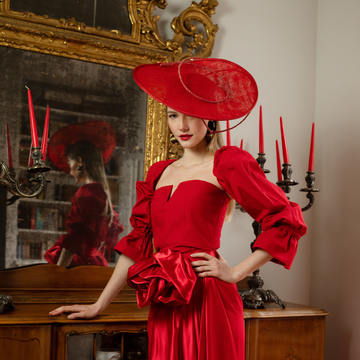 Ovalis — a hat perfect for special occasions.An oversized asymmetrical saucer hat in a vibrant...