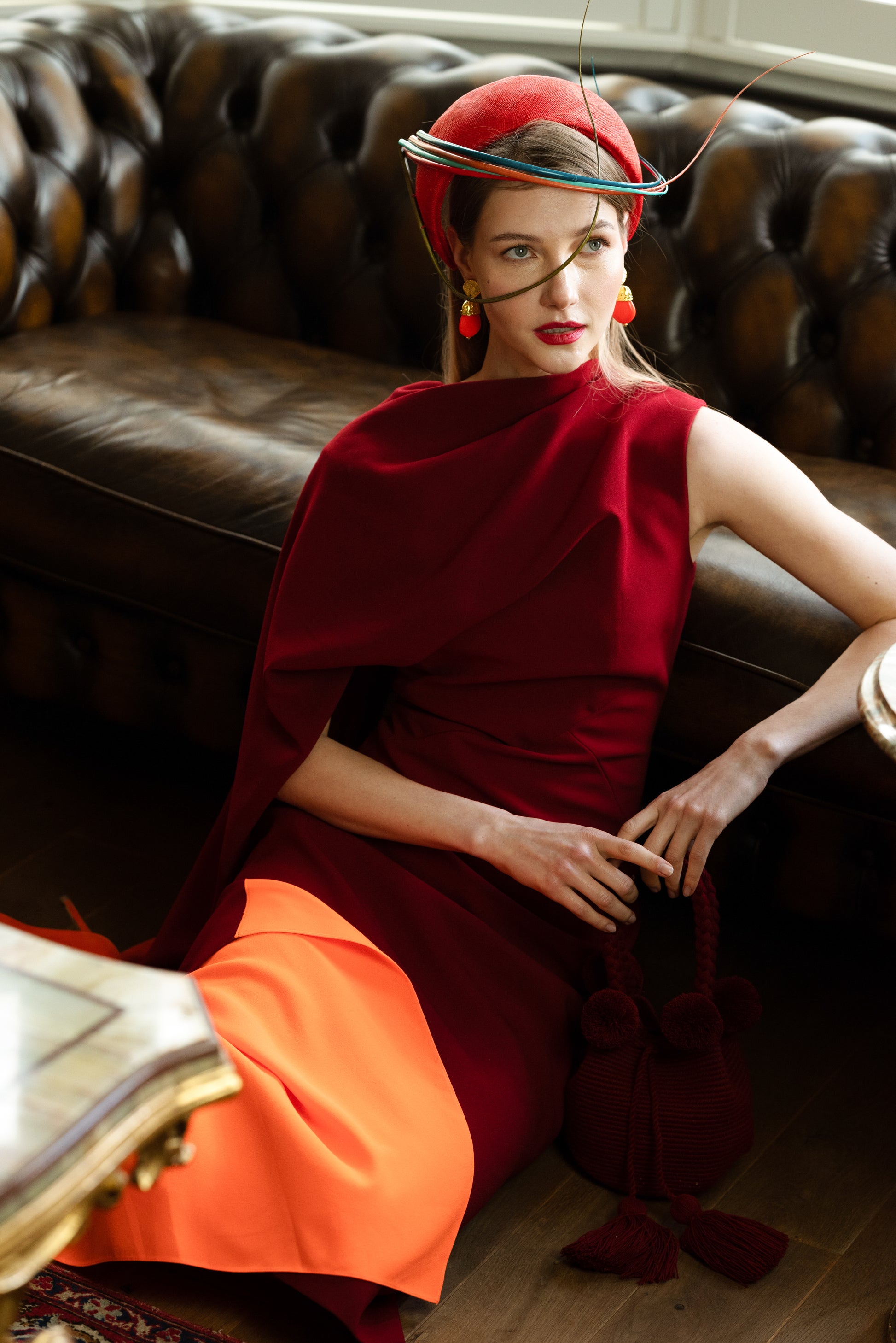 All of our headpieces are handmade in our studio in London. This headpiece can be customised in any colour/material combination. If you wish to try on this or any other hat options, please email us on info@ndlqmillinery.com