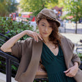 The Salice trilby has been made with the softest double sided velour felt. The exterior is cream and black, whilst the interior is animal print. The brim seductively peaks out to create attraction and interest and it has been decorated with a black velvet band, and faux-fur pom pom.