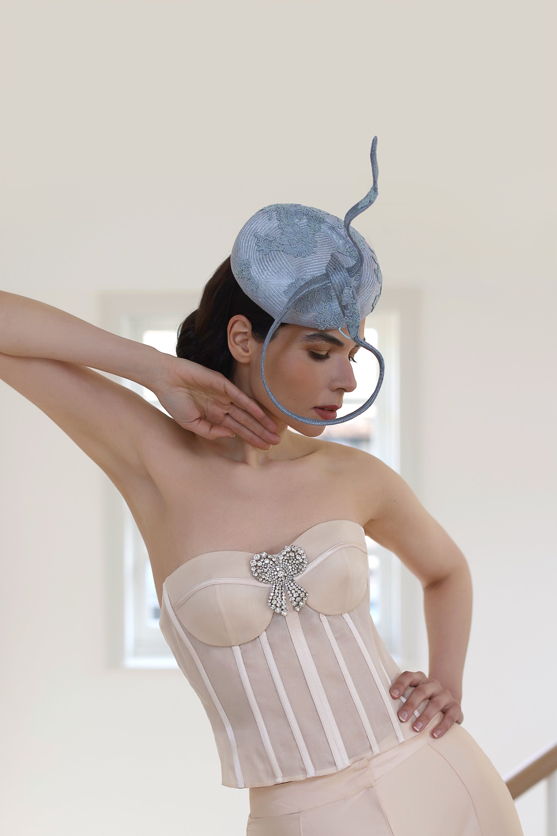 Squiggle — a headpiece perfect for wedding guests, attending the races, and dinner parties.