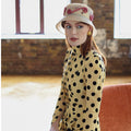 The Stencil Couture hat is a pinnacle of sophistication, crafted from luxurious cream crinoline, adorned with striking fuchsia cord swirls, and finalised with touches of intricate beading.