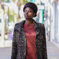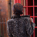 The Vettore pillbox has been made from a luxurious brown and black animal print velour felt, and decorated with a romantic bow located at the back of the head.